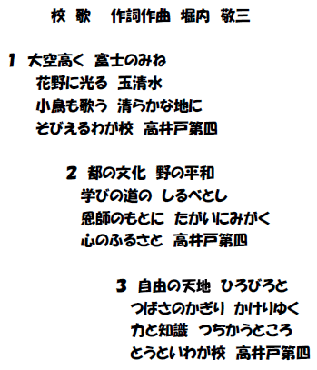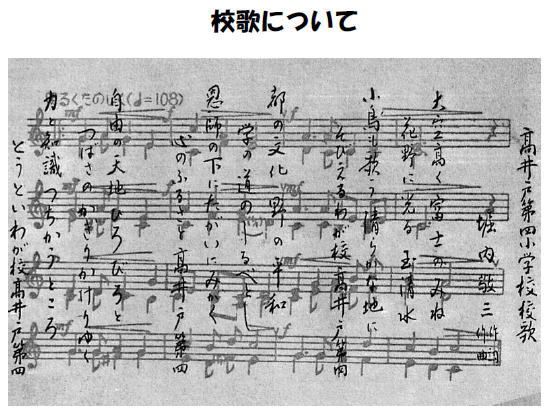 この学校で学ぶ子どもたちが、高四小の立派な伝統を受け継いでいくことを願っての心の歌と してです。
