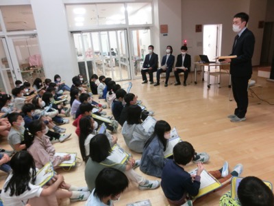 センターコートでは、4年生が安全マップ作りの学習をしていました。今日は、東京青年会議所の方々がゲストティーチャーとして来てくださいました。