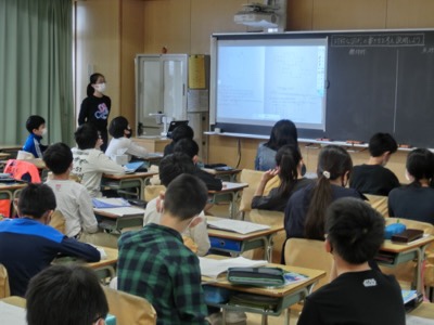 6年生が算数の少人数授業をしていました。3クラスを4つの教室に分けて学習を行います。