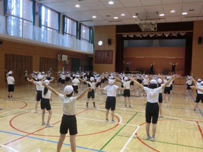 アリーナでは4年生が縄跳びを使った表現運動の練習をしていました。