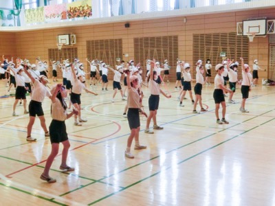 今年から、運動会の演目の学年を見直し、民舞系を高学年にしたため、2年と4年は用具を使ったダンスをすることになりました。