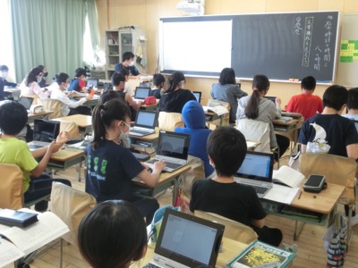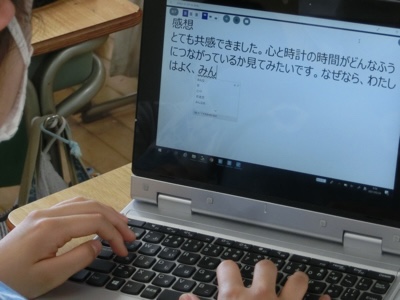 6-2は、国語の「時計の時間と心の時間」を読んだ感想をタブレットでまとめていました。