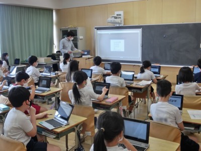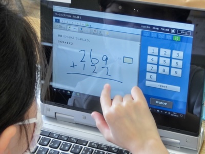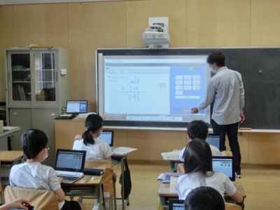 3年生もタブレットを使った学習が始まりました。これは3-4です。一人一人のタブレットに自分のIDでログインをすることから学びます。