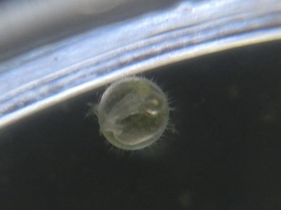 双眼実体顕微鏡と解剖顕微鏡を使って、卵を拡大しています。