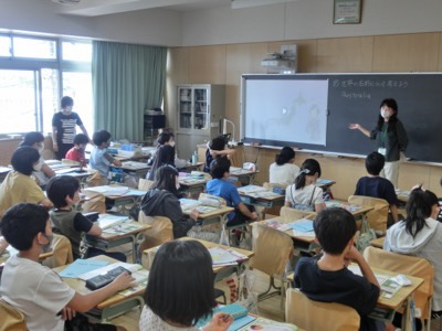 5-2は英語の授業です。オーストラリア出身で北海道に住んでいる人の動画を見て、話の内容を把握していました。