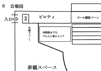 ご観覧の際、短距離走の時だけはゴールの先のエリアを立ち入り禁止とさせていただきます。短距離走では、ゴールの先まで駆け抜けるように指導しているためです。