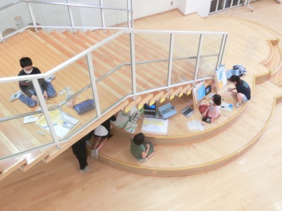 校内のさまざまな場所で絵を描いていました。