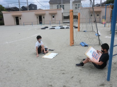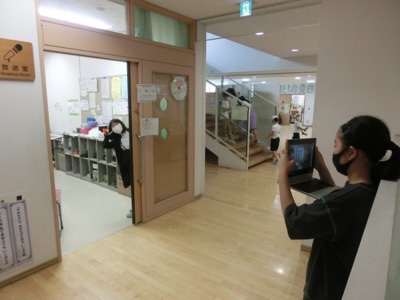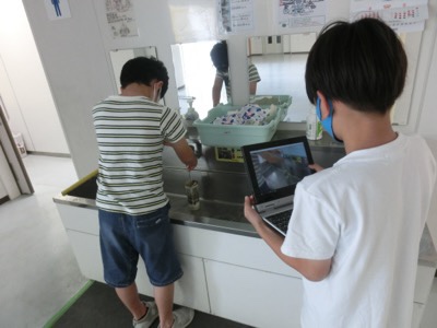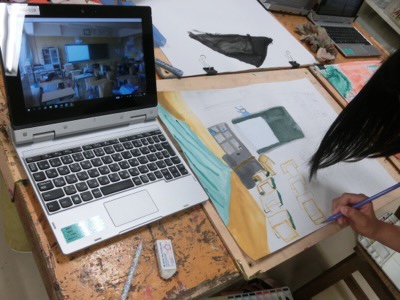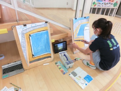 天沼小の特徴的な校舎の形は、写真を見ながら描かないと難しいかもしれませんね。一人一台タブレットはこんな活用のしかたもあります。