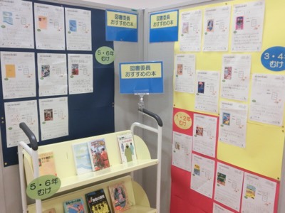 図書館の前にある「おすすめの本紹介」コーナーです。