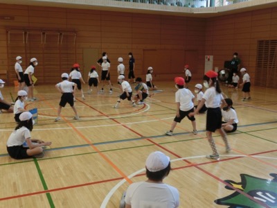 今日は全校で、体力・運動能力調査に取り組みました。1年生と6年生がペアになって、6年生がやり方を教えたり記録を取ったりします。