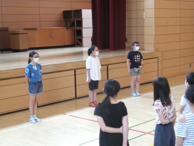 各クラスの代表の子どもが、今年の水泳指導のめあてなどを発表しました。
