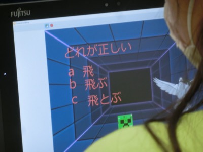 子どもたちは、3択クイズの形式で、正解したら音が鳴るとか色が変わるなどのコード(プログラム)を作っていきました。