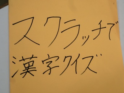 今日4-1の子どもたちが取り組んだのは、プログラミング言語であるScratchで漢字クイズのプログラムを作る活動です。