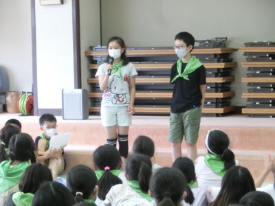 児童代表の言葉です。みんなで過ごす上で気をつけることなどを話しました。