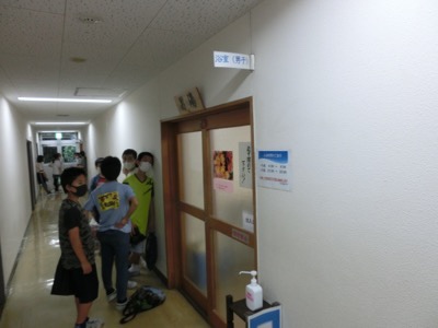 今回、お風呂ではマスクを外すため、1回の入浴人数を少なくしています。風呂の中では喋らない、そして密を避けるために完全入替制なので、お風呂の前の廊下で待機しています。
