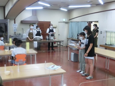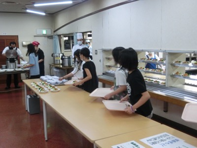 例年の移動教室では食事係が配膳しましたが、今回は感染防止のため、自分の食べるものを自分で配膳する方式です。