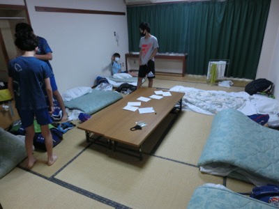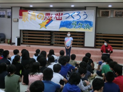 朝会は、弓ヶ浜海岸ではなくレクリエーションルームで行いました。