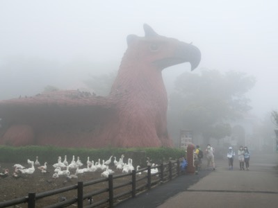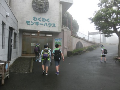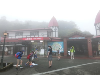移動教室最後の見学先、伊豆シャボテン公園に到着しました。小高い山の上にあるので、霧に包まれていました。