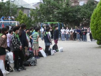帰校式で、お迎えに来てくださった保護者の方々に挨拶をしました。