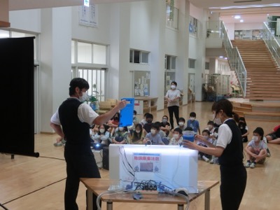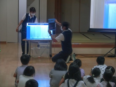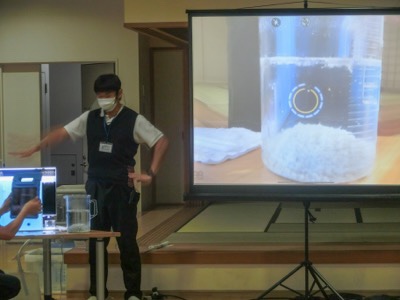 川の水がどのようにしてきれいな水道水になるのか、実験で説明してくれます。