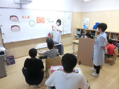 歯科衛生士の方と歯科校医の先生が、歯の磨き方など、口の中の衛生について指導してくださる「口腔保健指導」がありました。今日は、6年生とこだま学級の子どもたちが教えてもらいました。