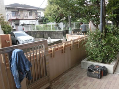正門の工事はもう少しかかるようです。低く切った部分にフェンスを立てる作業が続いています。