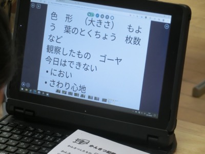 観察したことをタブレット上でまとめています。