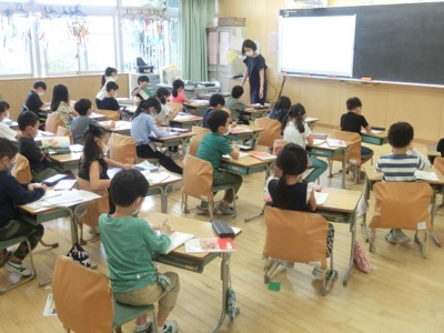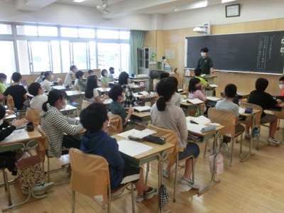 5-3は、国語で「相手の立場や意図を理解して計画的に対話をしよう」という学習をしていました。理由を付けて意見を述べる活動に、私も少し参加してきました。