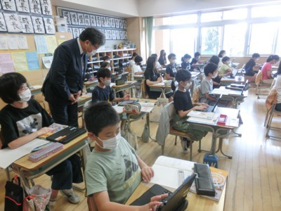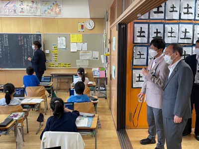 その後、タブレット活用、オンライン授業、感染防止対策などについて、校長室で意見交換をしてお帰りになりました。