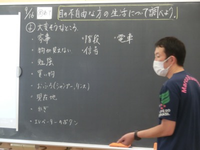 4-1は、総合的な学習の時間に「目の不自由な方の生活について調べよう」という活動をしていました。