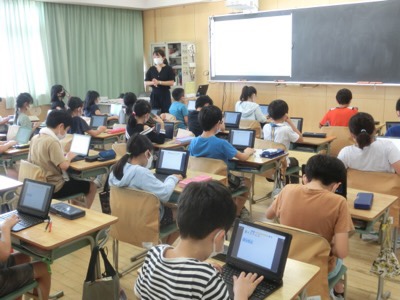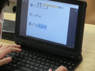 お隣の4-2では、オリンピックパラリンピックを振り返ったことをタブレット上でまとめていました。
