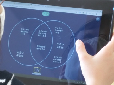 一人一人が整理したものが、全員分電子黒板に表示されます。ノートに書いて先生に見せに行かなくても、手を上げなくても、全員の意見が共有できる授業になります。