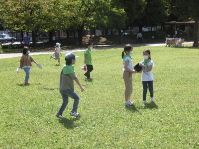 原っぱで元気に遊んで帰ってきました。次は1年生を連れてきて案内することになっています。