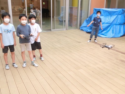 これはプログラミングクラブです。ドローンをプログラミングで飛ばす前に、手動で操作してどう飛ばせばよいのかを試してみました。