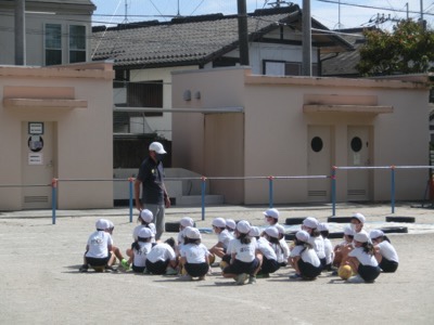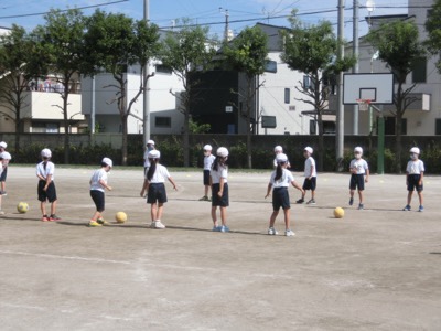 隣では1-3もボール蹴りをしていました。向かい合ってパスしています。