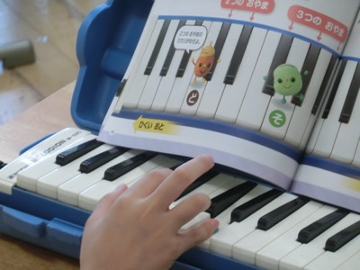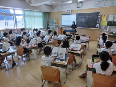 1-1の音楽の授業です。緊急事態宣言が明けて、区のガイドラインにより鍵盤ハーモニカを演奏できるようになりました。