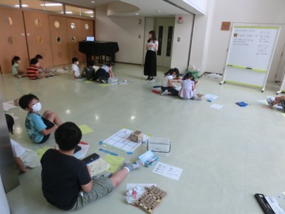 2階のエレベーターホールで2-3がプログラミングの学習をしていました。これまで取り組んできたプログラミングロボット「PETS」を動かす最後の授業です。