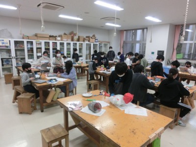 図工室では6-3が、和紙を使った照明器具を作っていました。