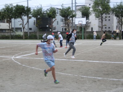 その後、校庭で鬼ごっこ。実習生の田中先生はずっと鬼です。これって子どもたちが楽しいだけなんじゃないか、という疑問もちょっとありますが(笑)、最後の1日を田中先生も思い出にしてくれたようです。