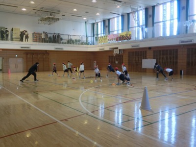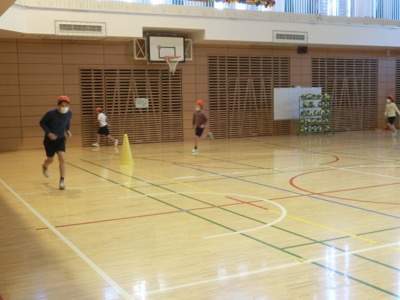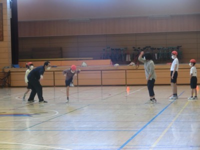 アリーナでは、こだま学級が体育をしていました。まずは準備運動。