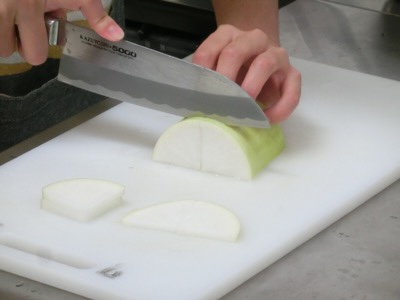 恐る恐る包丁を使っていましたが、家でもやっている子は慣れてますね。