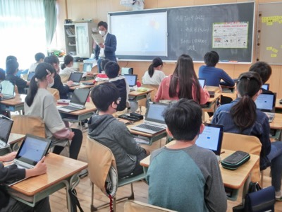難しいところは、講師の先生や学校支援本部(AW)のみなさんが画面で見せながら教えてくれました。