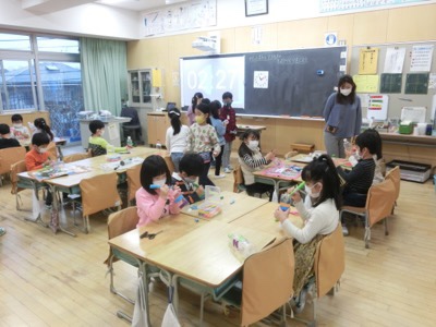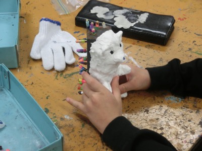 図工室では、3-3が「おしゃれハリネズミ」を作っていました。