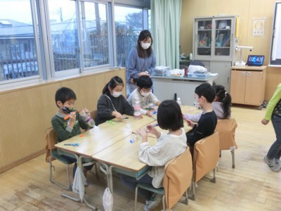 1-1は、ペットボトルを使ったマラカス作りをしていました。