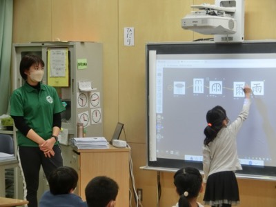 電子黒板上で、象形文字から今の漢字になるまで順番に並べました。
