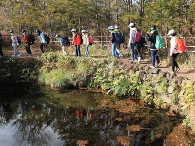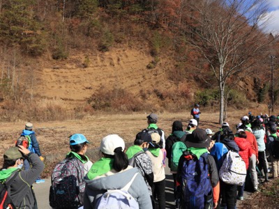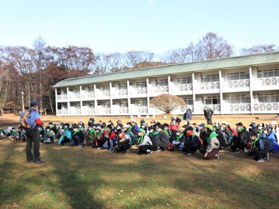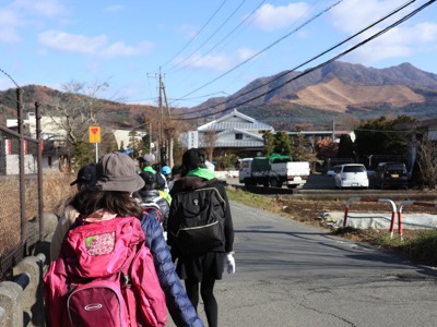 富士学園から忍野八海まで歩き、そこから高座山に登ります。出発前に、ガイドの方が山歩きの注意を話してくれました。