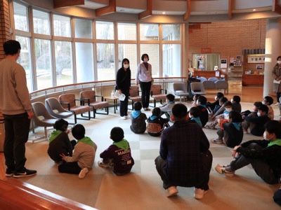 予定通り、富士学園に到着しました。はじめに体育館で開園式を行います。富士学園の支配人の挨拶を聞いています。