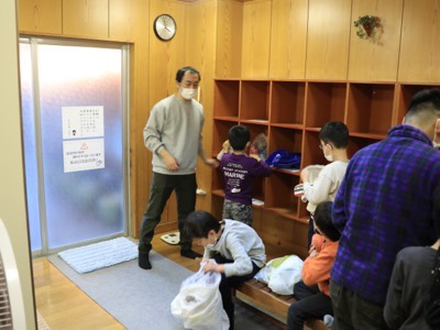 入浴時間が短いので、脱衣所は大忙しです。なんとか時間内に済ませました。