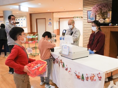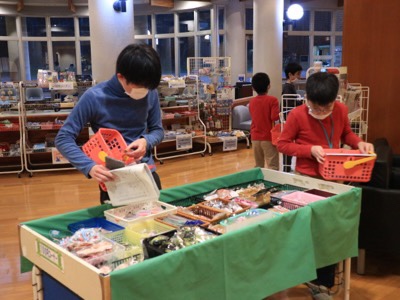 入浴後はお土産タイム。しおりに書いてきた「誰に何を買うか」を見ながら選びました。