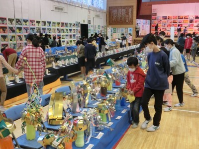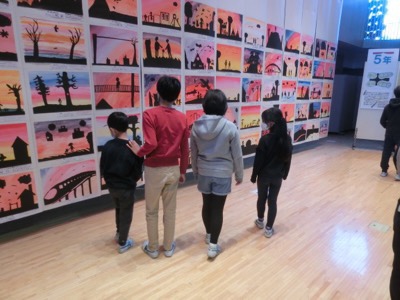 昨日からの展覧会、今日はたてわりのペア学年で一緒に鑑賞する時間がありました。